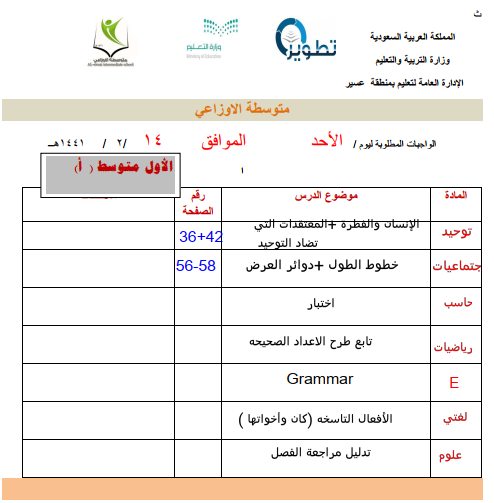 متوسطة الأوزاعي نيوز1441 مذكرة واجبات الأحد 14 2 1441